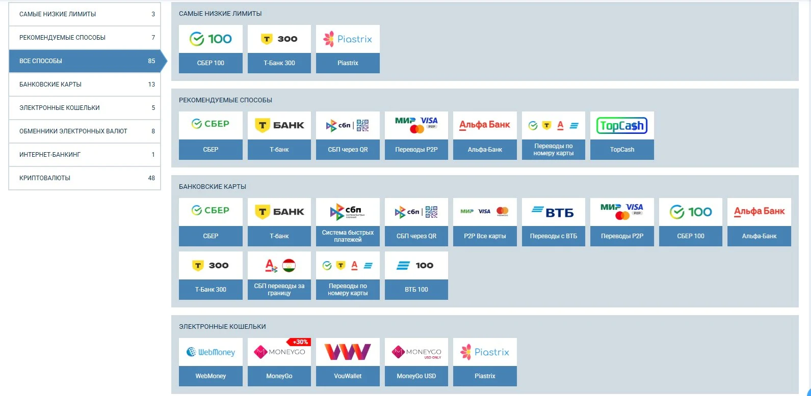 - Платёжные системы и электронные кошельки — Piastrix, FK Wallet и другие сервисы;