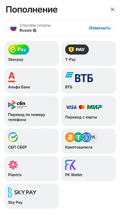 - Электронные кошельки — Piastrix, FK Wallet, Sky Pay;