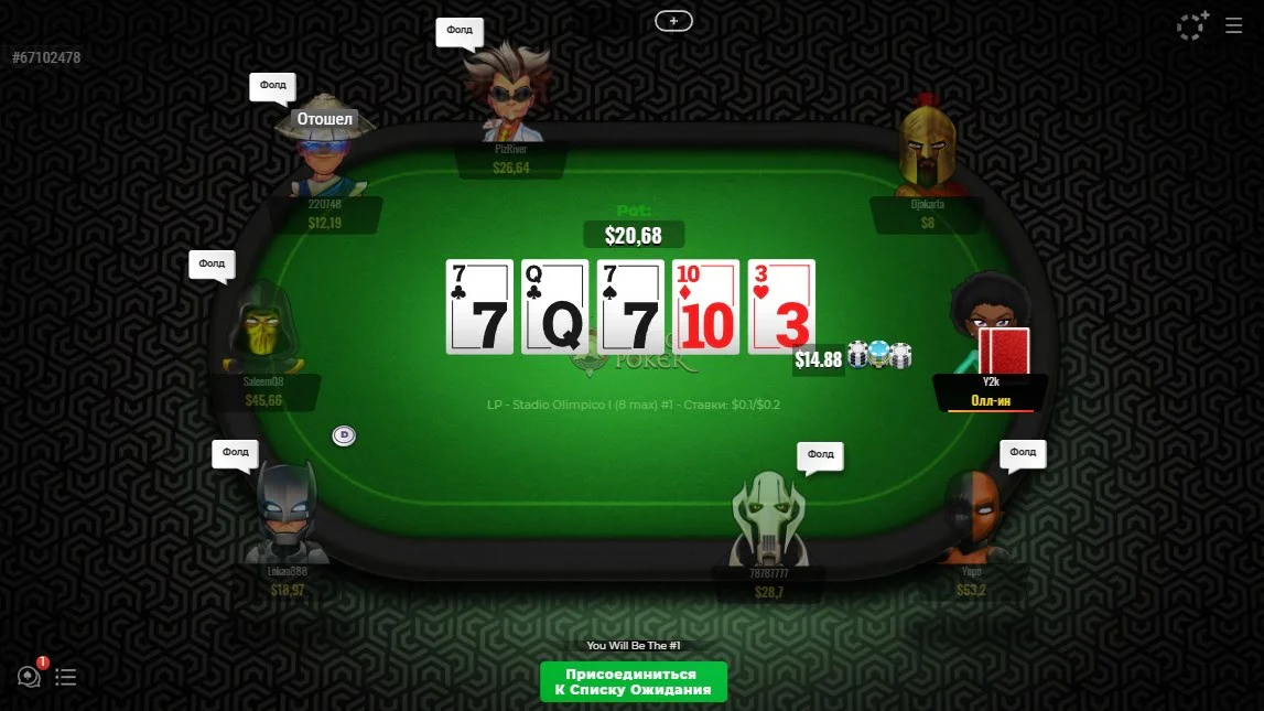 Размеры ставок варьируются от $0.01/$0.02 до $5/$10, что позволяет подобрать комфортный уровень игры для каждого.