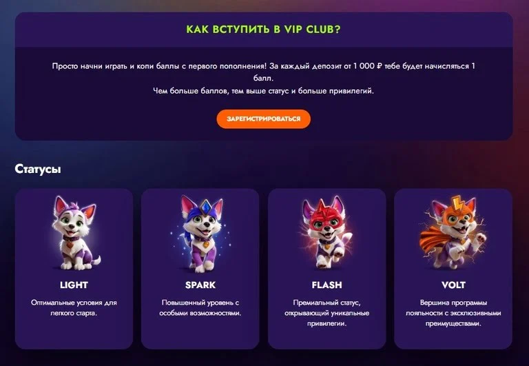 - VOLT— максимальный статус с эксклюзивными привилегиями.