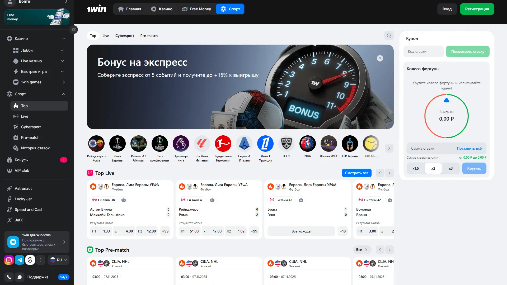 1Win — Профессиональная платформа для ставок на спорт и киберспорт